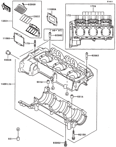 KAWASAKI JETSKI  1998年式  1100ZXI JH1100-A3 > クランクケース