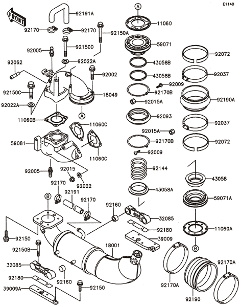 KAWASAKI JETSKI  1997年式  750X-4 JH750-E4 > マフラ