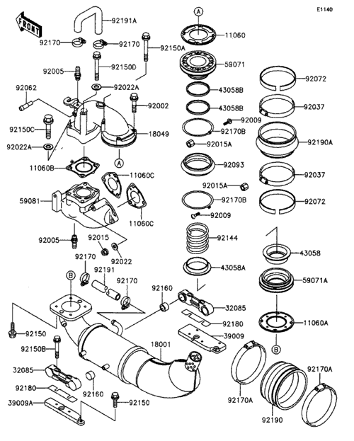 KAWASAKI JETSKI  1997年式  Xi-Super Sports JH750-F2 > マフラ